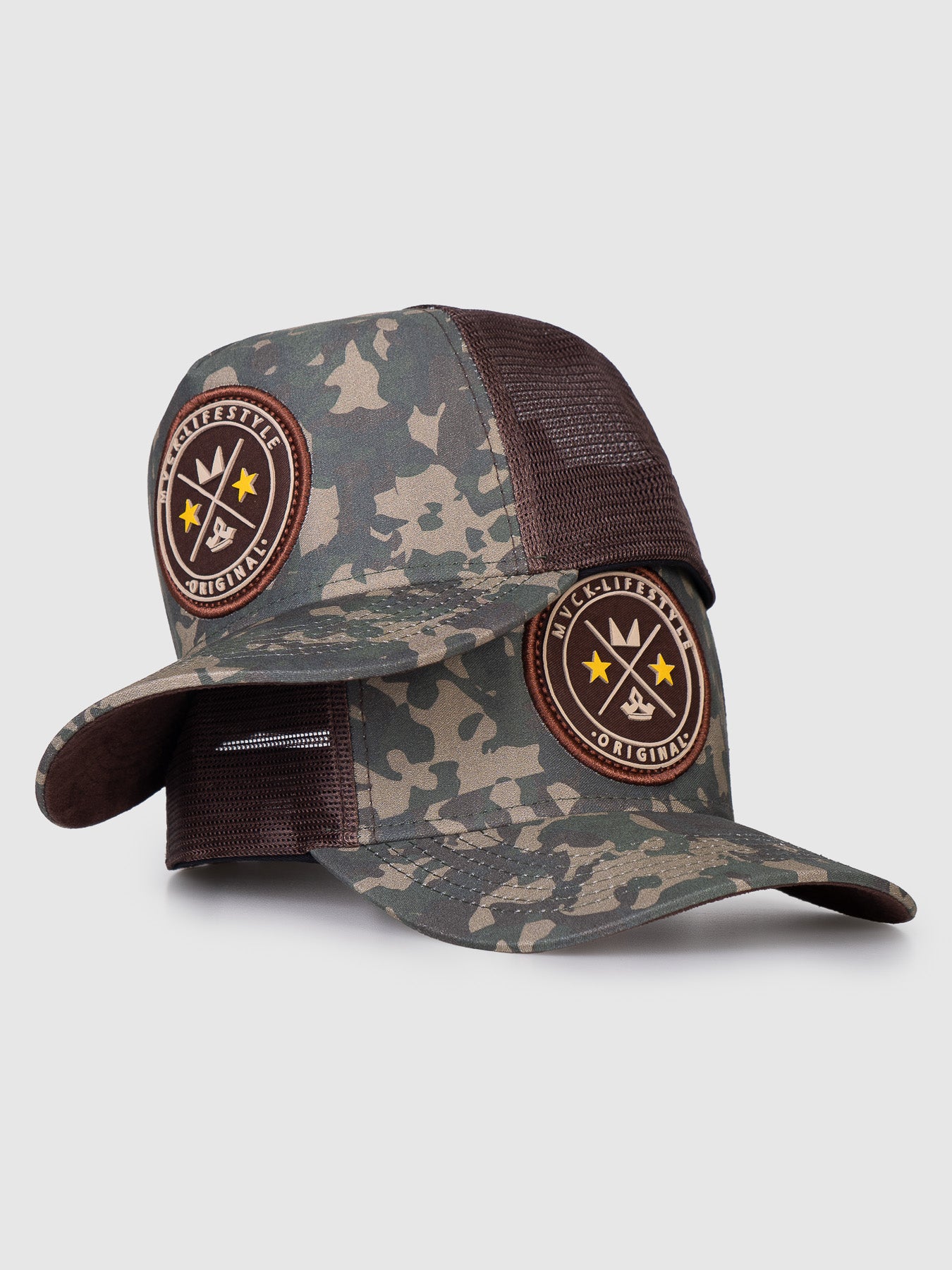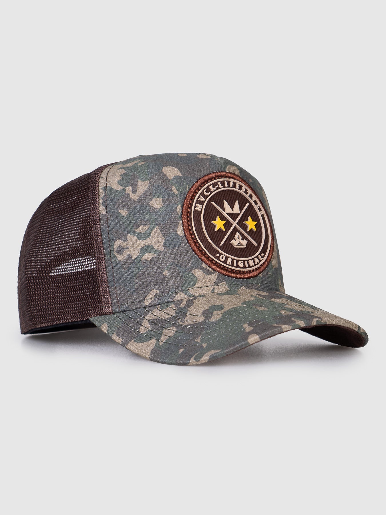 Boné Trucker Brasão Camuflado Tela MVCK