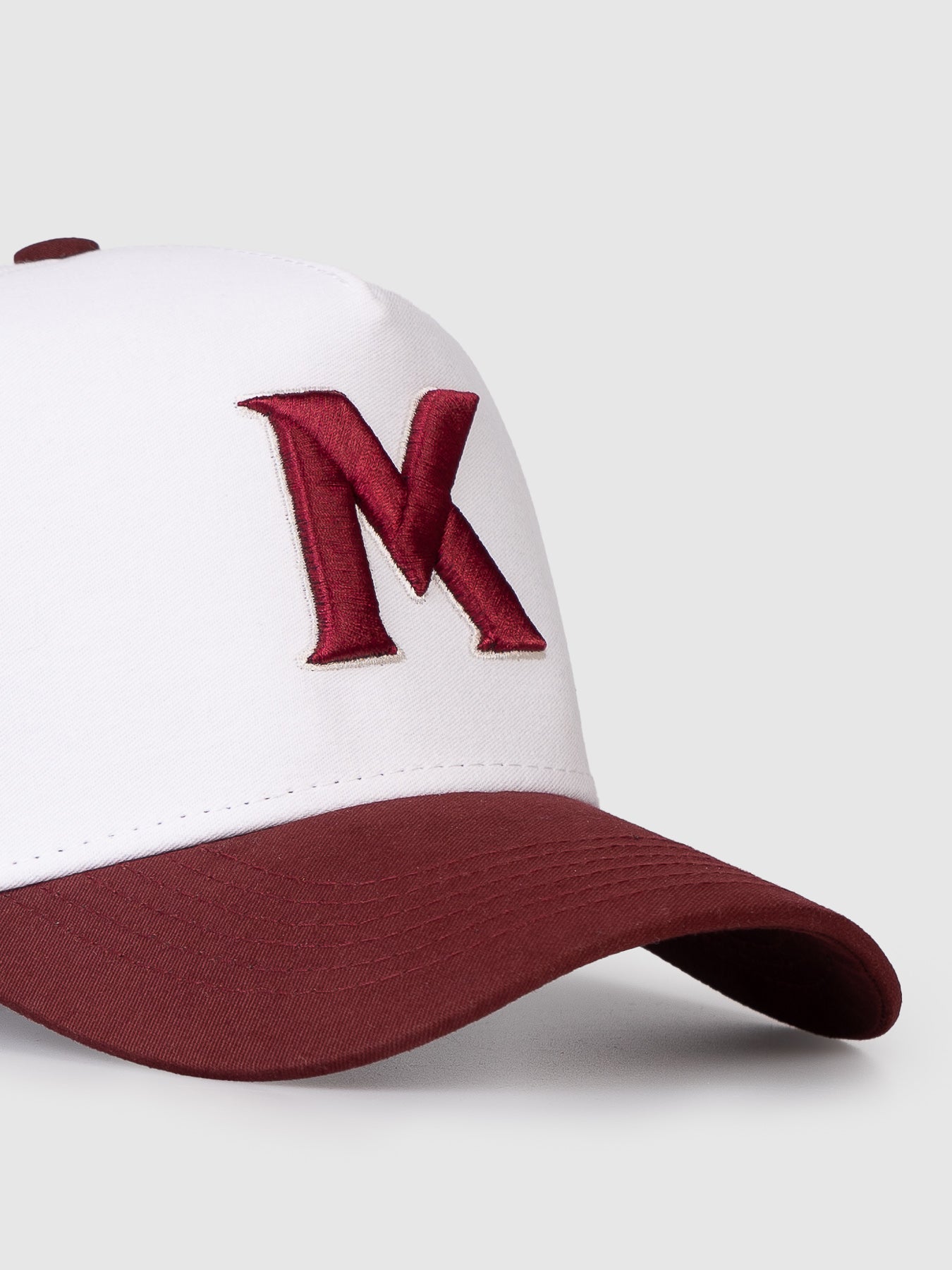 ✓Boné Trucker Maverick Seven Off White e Vinho MVCK, confeccionado em brim algodão.