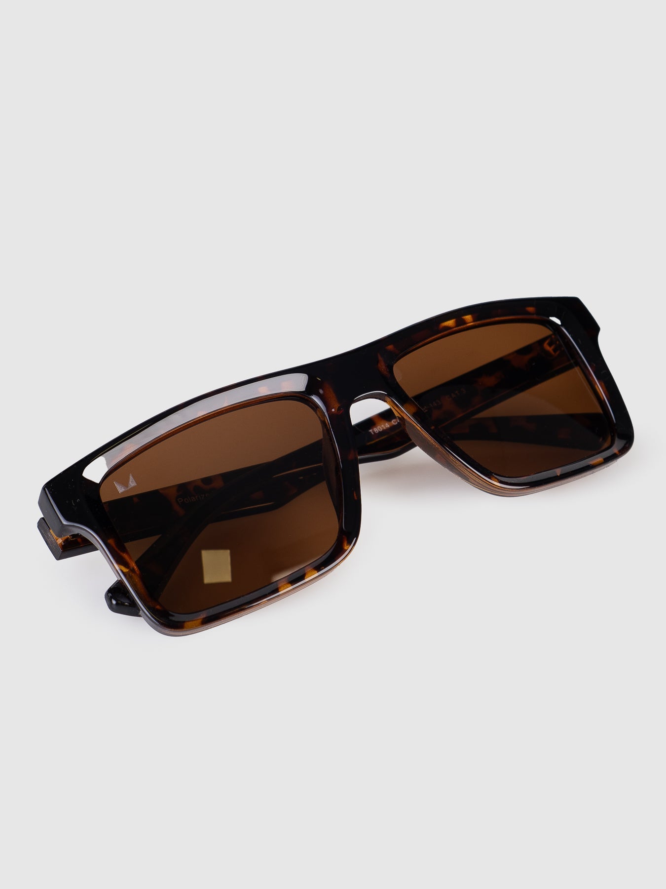 Possui armação em acetato com lentes marrons polarizadas e proteção aos raios UV.
