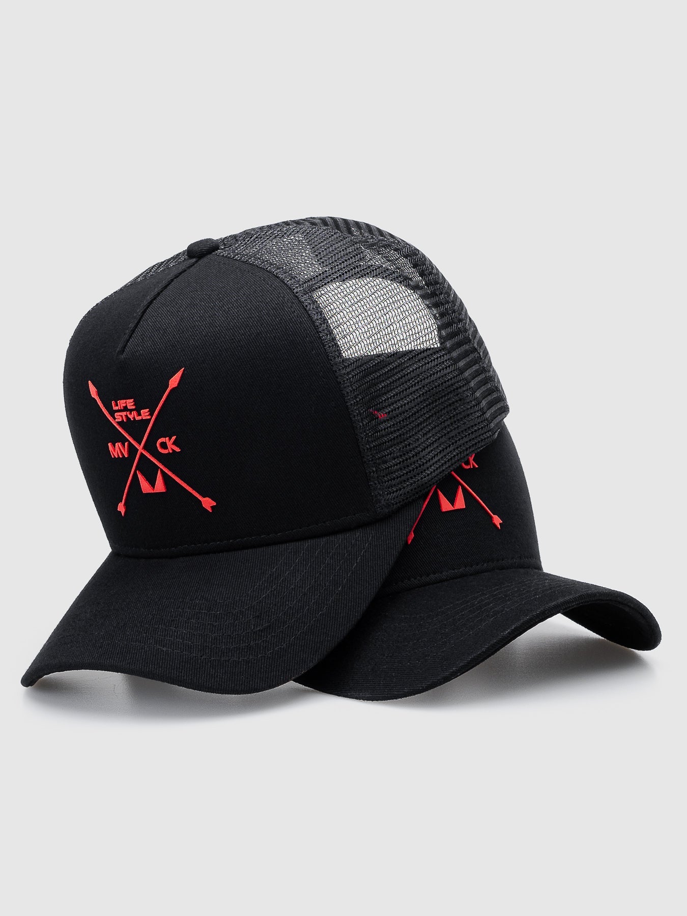 Logo emborrachada sobreposta ao boné com acabamento premium.