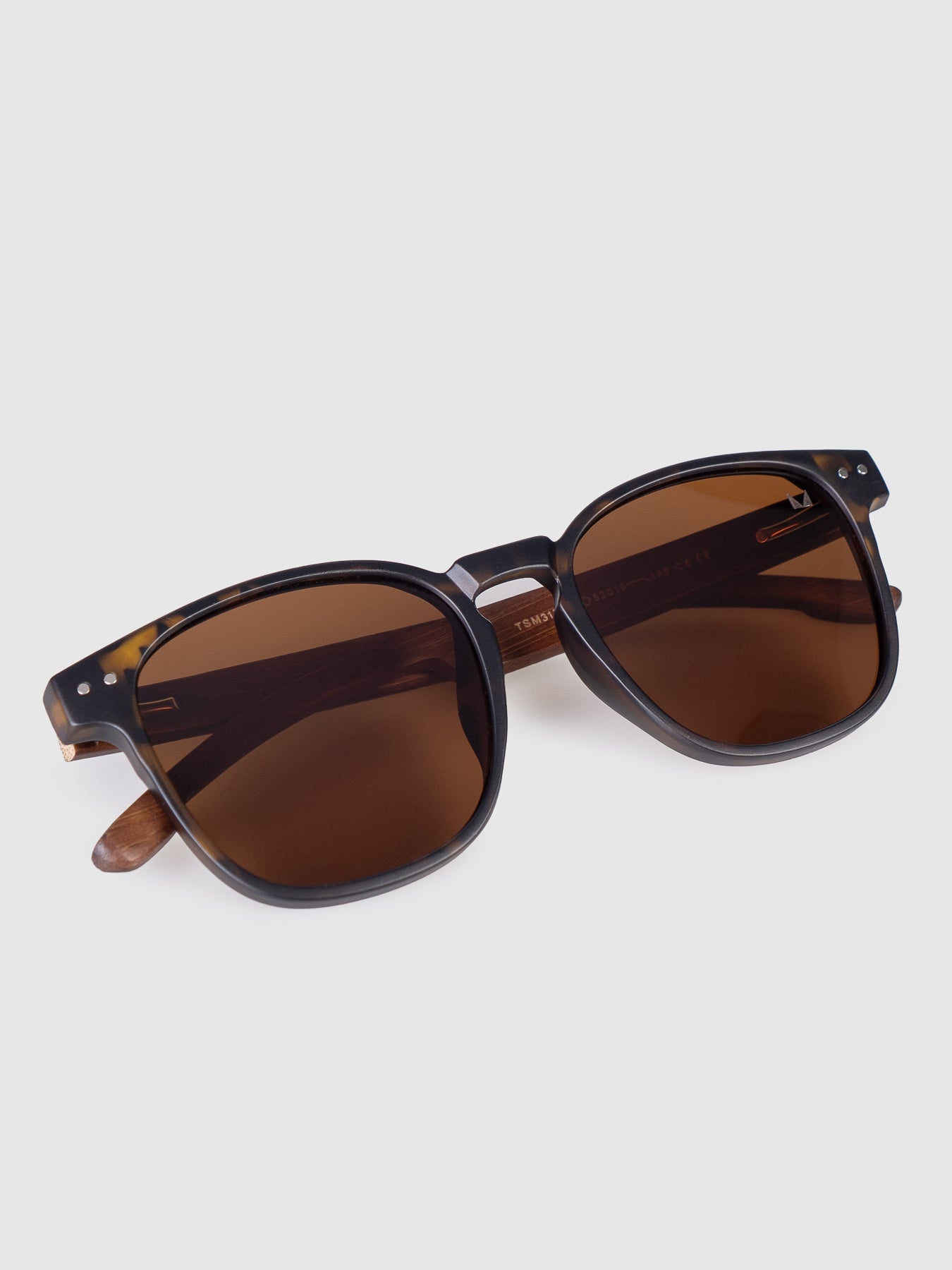 Possui armação em acetato com lentes marrons polarizadas e proteção aos raios UV.